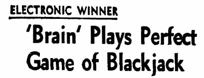 After running through the calculations for a nuclear reactor, Datatron asked: "How many suckers–I mean players?" "The machine dealt four hands by marking the names of the cards down on its typewriter," The Times said. To help the humans determine whether they should ask for another card to fill out their 21, Datatron politely–and without being asked–told them their chances of drawing a card and not going over 21."