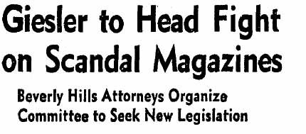 Because Confidential did not do business in California and couldn’t be sued in the state courts, Giesler said the only solution was legislation and called on Atty. Gen. Pat Brown to go before the Legislature to get a bill that would allow legal action.
