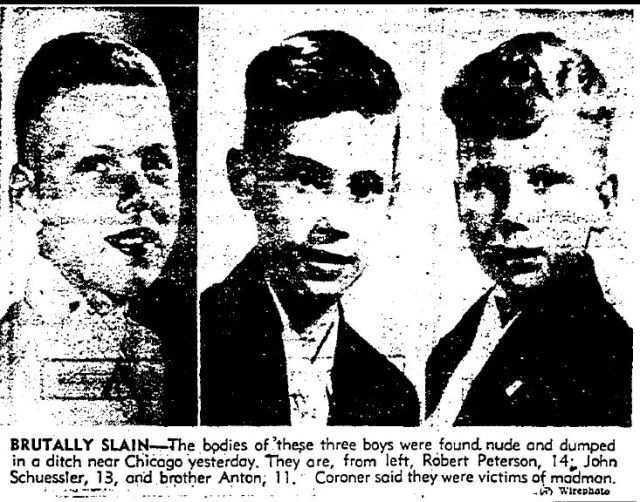 According to Chicago investigators, police chemists identified material under the slain boys’ fingernails as peat moss and fertilizer as is used on golf courses. The Cook County Sheriff’s Department said that the boys’ bodies “were thrown like bags of potatoes” into a ditch, which “would suggest that at least