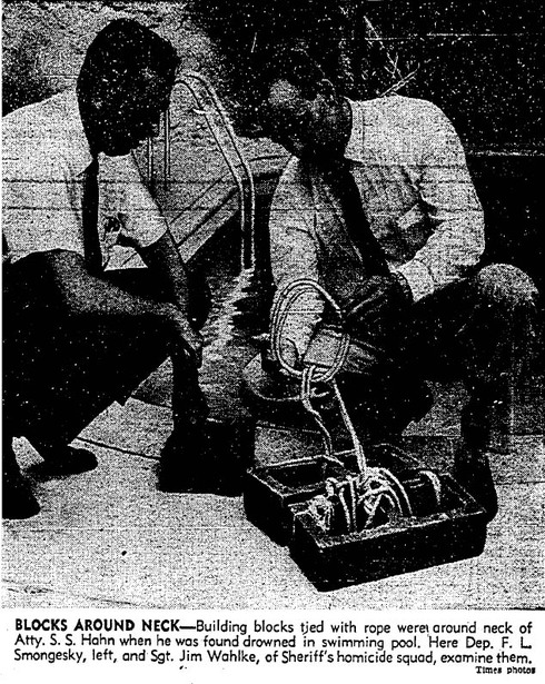 Then he tied one end of a rope around his neck, threaded the other end through two concrete blocks and jumped into the deep end of the pool. That’s where he was found by 17-year-old Bob Nelson, a