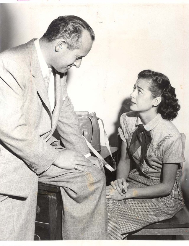 “I have hand trouble. Unconsciously I clasp my hands and then start wringing them. It’s getting to be a gag now on the set. Director John Farrow (“Calcutta” and “The Night Has a Thousand Eyes”) had a stock line to deliver every time my hands wouldn’t behave. It was, ‘Hands, Gail, cut.’ They finally tied my hands to my sides with handkerchiefs.”
