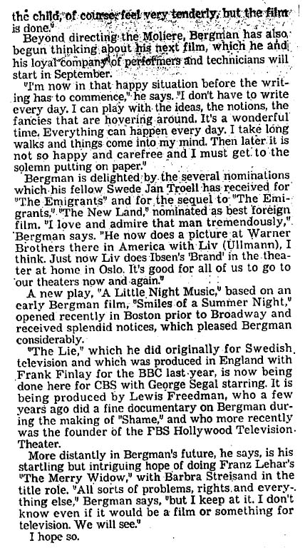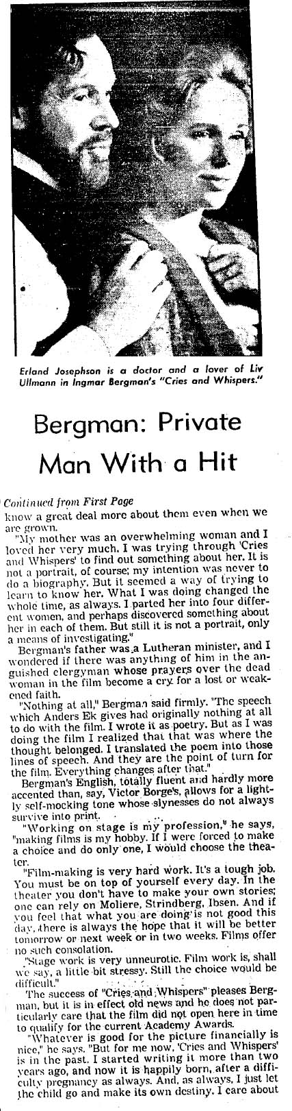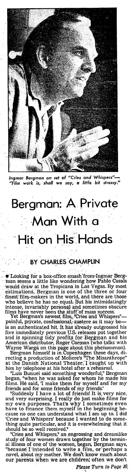 Charles Champlin’s interview with the late Ingmar Bergman on “Cries and Whispers,” Feb. 25, 1973:
