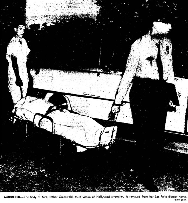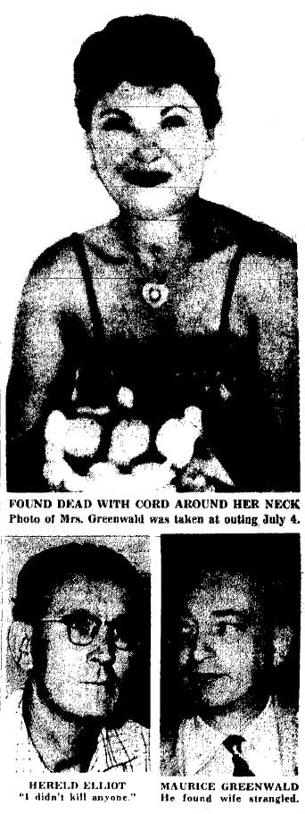 She’s married to Maurice H. Greenwald, 49. He’s her second husband and works at a stationery supply warehouse. Maurice is going to be the one who finds her, somewhere between 5:55 p.m. and 7:30 p.m., depending on the newspaper account. He’s going to say that Esther was in her robe when he left at 7:15 a.m. and usually didn’t get dressed until noon.