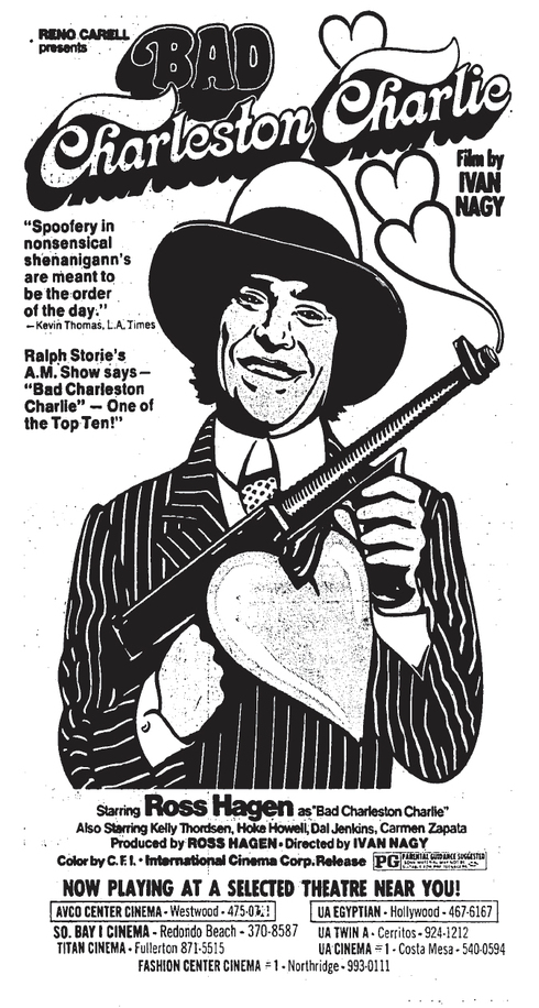 Bonus factoid: As several people have noted, “Bad Charleston Charlie” was directed by Ivan “Izzy Sleeze’s Casting Couch Cuties” Nagy, remembered today for his role in the case of Hollywood Madam Heidi Fleiss. Of course there are many claimants to the title “Hollywood Madam,” including Madam Alex, and much earlier, Ronnie Quillan and Brenda Allen.