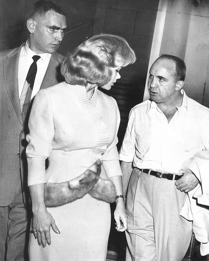 Absolutely right! At the Hall of Justice, Sgt. Eugene Gabriel listens as Mickey Cohen expresses outrage over the April 30, 1959, arrest of Candy Barr at the Largo Club on the Sunset Strip. Cohen, who had a ringside seat for Barr’s act, was incensed when deputies arrested her after a Texas bail bondsman canceled her bond in a narcotics case. Cohen later told newsmen that he hoped to marry Barr after his divorce to LaVonne Cohen was final, The Times said.