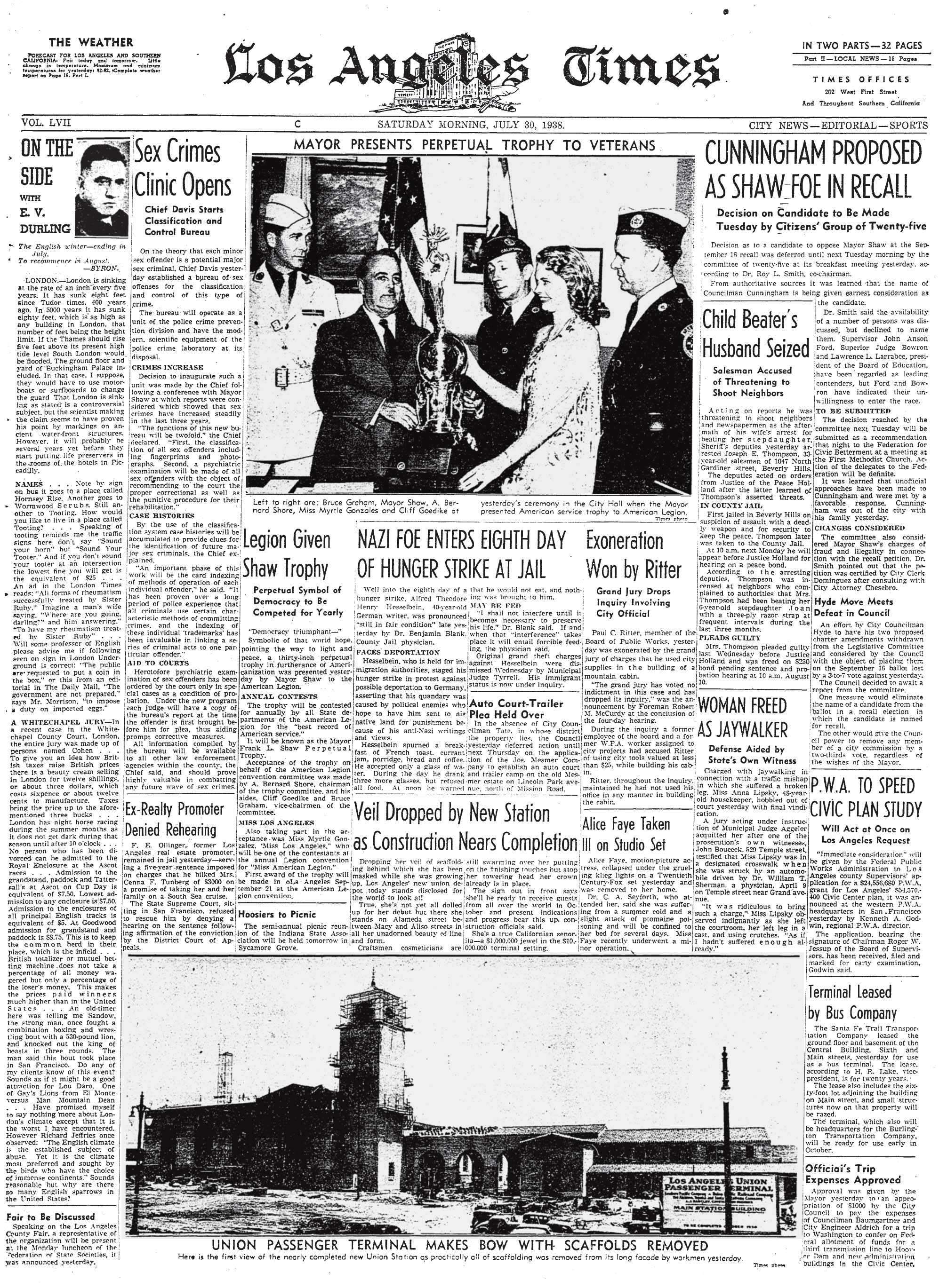 Dropcap The search is on for a candidate to face Mayor Frank Shaw in the recall election. The Times story mentions Councilman Stephen W. Cunningham, but more important, it says that Judge Fletcher Bowron and Supervisor John Anson Ford “have indicated their unwillingness to enter the race.”