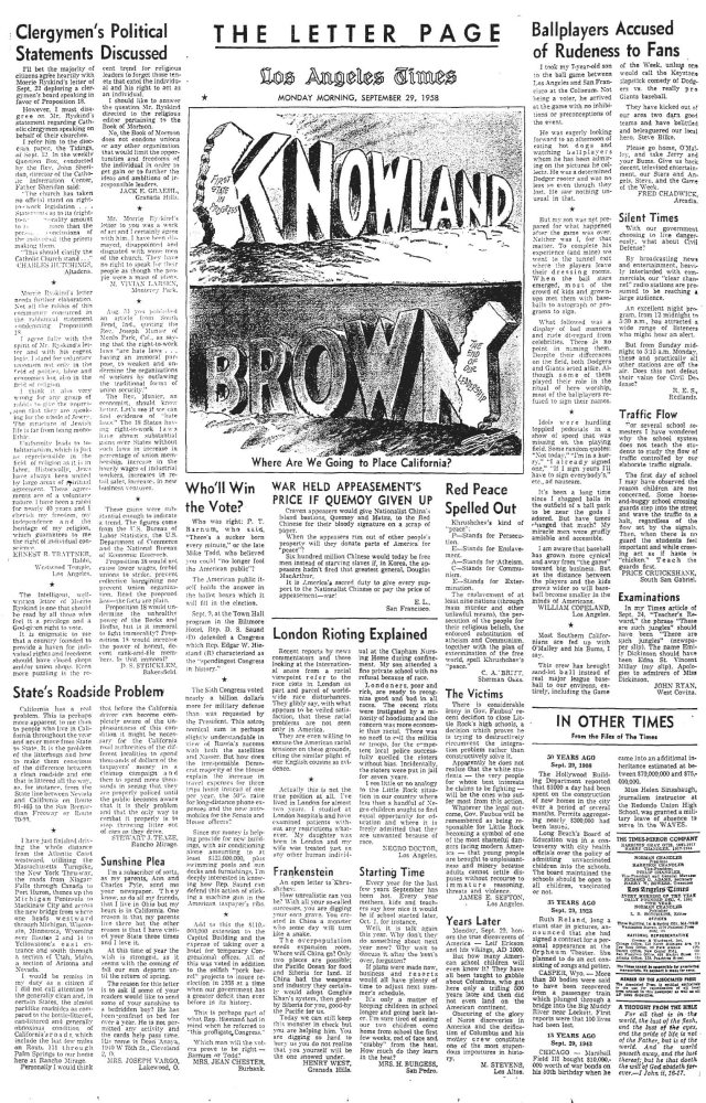 Above, pro baseball players shatter youngsters’ illusions by refusing to sign autographs. I guess Pat Brown can rule out an endorsement from The Times. Such was the state of political cartoons at The Times before the arrival of Paul Conrad.