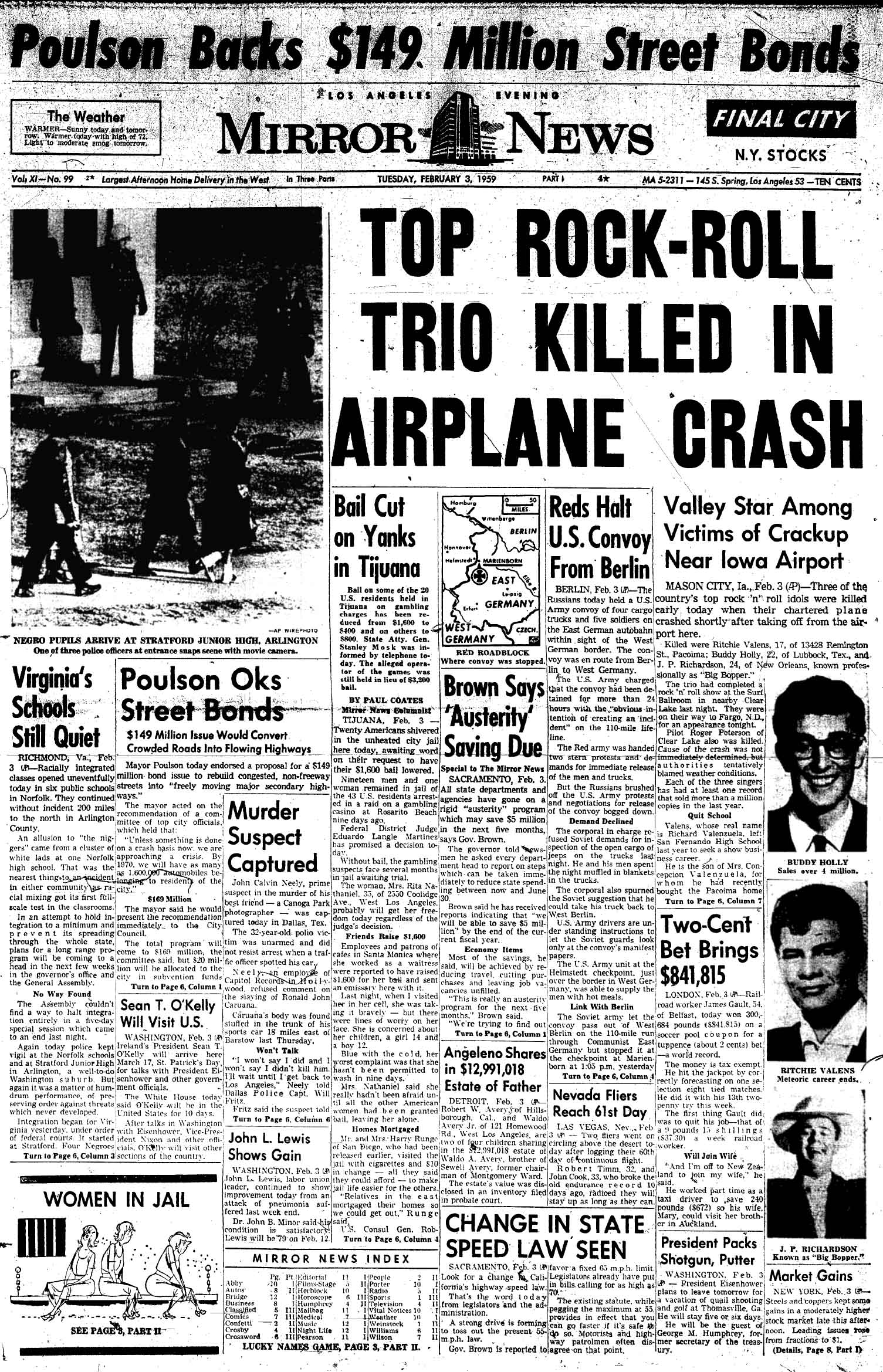 She was reflective, if a little dim, about memories of her son, who died Feb. 3, 1959 in a plane crash during a snowstorm in Iowa. That crash also killed two Texas rockers, Buddy Holly and J. P. (The Big Bopper) Richardson.