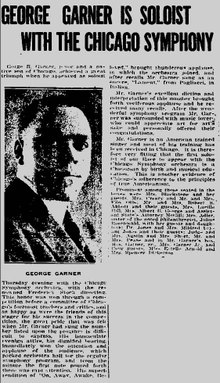 I’ve been able to gather some more information about George Robert Garner, a Pasadena choral director and singer who was the first African American to solo with the Chicago Symphony Orchestra.Frank Villella, archivist with the Chicago Symphony Orchestra, says: