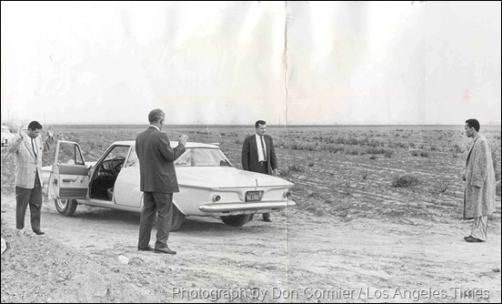 ![]() Photograph by Don Cormier / Los Angeles Times March 11, 1963: Jimmy Lee Smith returns to the crime scene to reenact the “Onion Field” killing. From left, Sgt. Danny Galindo as Officer Karl Hettinger; Sgt. G.H. Bates as Officer Ian Campbell; Sgt. Pierce Brooks as Gregory Powell and Smith.