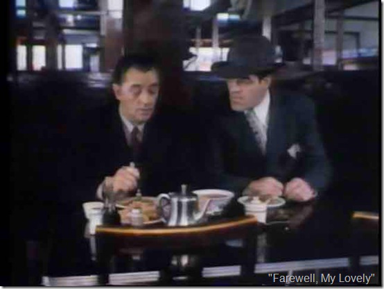 Here’s another historic location in the 1975 film “Farewell, My Lovely,” a scene with Robert Mitchum and Jack O’Halloran at the Far East Cafe on 1st St. in Little Tokyo.