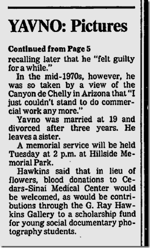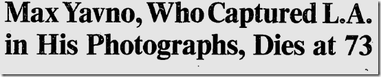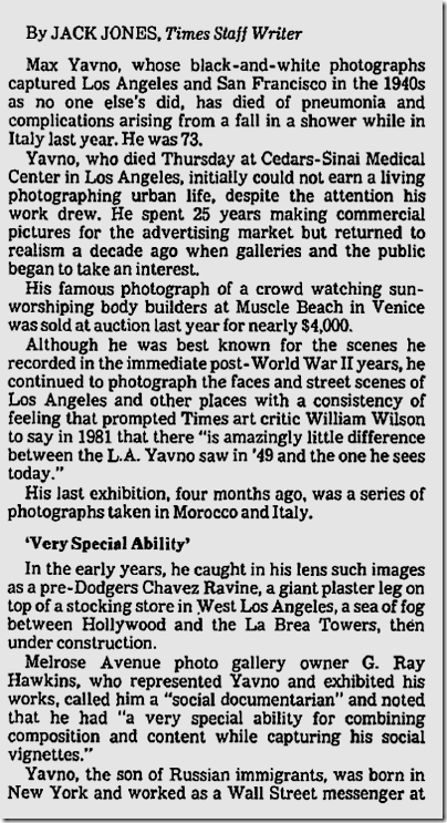 Even if you have never heard of Yavno, you have seen his work. His photograph of Muscle Beach is probably his best-known image (he spent three Sundays getting the perfect shot), and his photo of Carthay Circle Theater is used for the cover of “Los Angeles A to Z.”