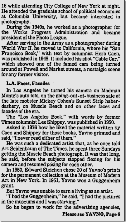 That pretty much sums up the 1950 collaboration of Lee Shippey and Max Yavno (d. 1985): You remember the pictures and forget the words. In fact, Yavno once said he never read any of Shippey’s text. |