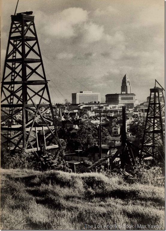 One of the oddities about “The Los Angeles Book” is that Yavno’s photographs take a much harder edge than Shippey’s text. The somewhat bland recitation of facts is juxtaposed with gritty photographs, like the shot of oil derricks and City Hall. (And to the uninitiated, yes, abandoned oilfields are all over Los Angeles).