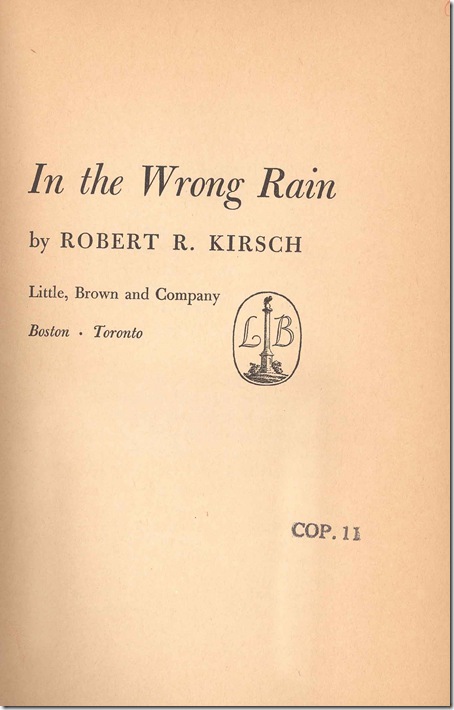 I suppose that seems overly harsh. Then again, since I picked up “In the Wrong Rain” from the Los Angeles Public Library last week, I’ve been referring to it as “In the Wrong Business,” because, frankly, it is that bad.