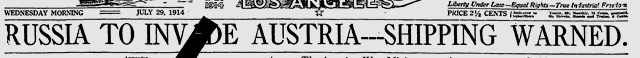 July 29, 1914: VIENNA– War was officially declared today by Austria-Hungary and offensive operations against Servia were begun. Austrian troops crossed the frontier, marching to Mitrovitza, the Servians being driven back.
