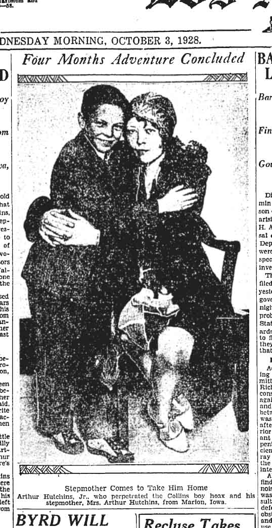 The “Enigma Boy” who fooled police into believing that he was Walter Collins is identified as Arthur Hutchins Jr. of Iowa.