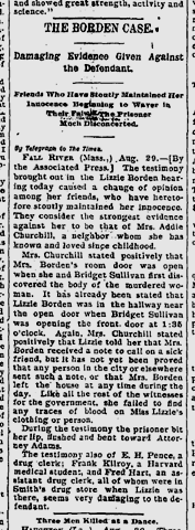 Aug. 30, 1892: Damaging evidence against Lizzie Borden.