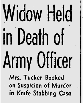 Marie Tucker was indicted in the killing of Maj. George A. Tucker, battalion commander at Ft. MacArthur, and released on $5,000 bail. The charges were dropped in 1947 because the witnesses, all military officers, were scattered around the world, The Times said.