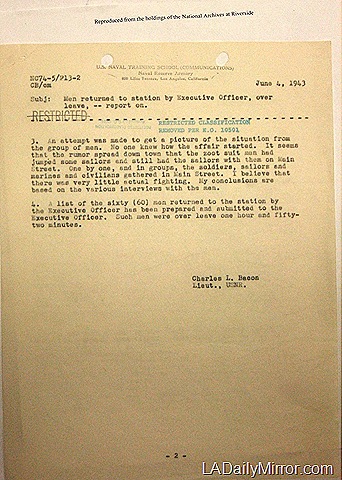 June 4, 1943: Lt. Charles L. Bacon reports on the Zoot Suit Riots.