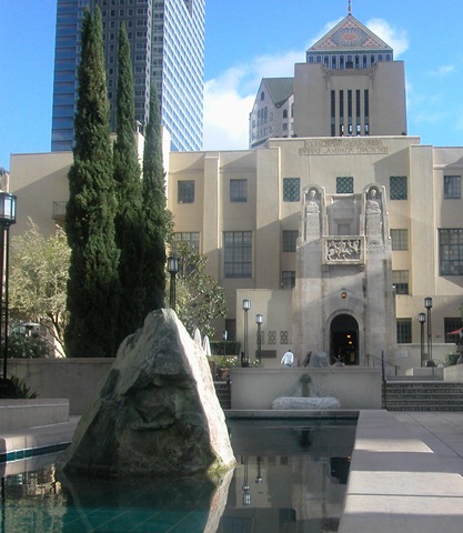 The pointed roof … the Art Deco lines … could it be the Los Angeles Public Library? I wasn’t sure.