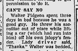 At least we know that Pidgeon 1) could drive and 2) had a car. Those might seem like somewhat absurd statements, but when one is checking a book at the molecular level everything is fair game – and “Full Service” is clearly a book that needs to be checked at the molecular level.
