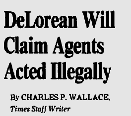 John Z. DeLorean, father of the DeLorean automobile, says federal agents entrapped him in an alleged conspiracy to distribute cocaine. DeLorean, who said he hoped to use the drug money to rescue his company, died in 2005 at the age of 80.