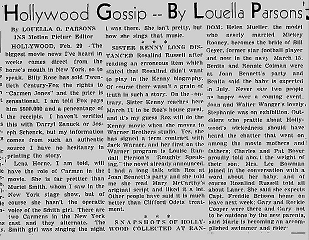 4 Responses to 1944 in Print — ‘Hollywood Gossip by Louella Parsons,’ March 1, 1944