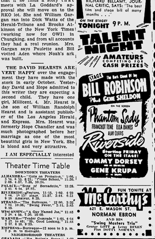 HOLLYWOOD, March 26 — A lawsuit that may completely upset one of M-G-M’s most important pictures, starring Susan Peters and Robert Young, looms potent on the horizon. Today, by wire, Pauline Leader Brand, former wife of Millen Brand, author of “The Outward Room,” confirmed information she is preparing to sue M-G-M for $500,000. She is alleging the main feminine character in the movie (now titled “Secrets in the Dark”) is she and that it would damage her because there is an illicit love affair and a baby born out of wedlock.