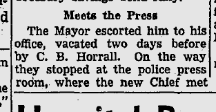 Former Marine Maj. Gen. William A. Worton becomes Los Angeles police chief. On his way to his office with Mayor Fletcher Bowron, he visits the press room: