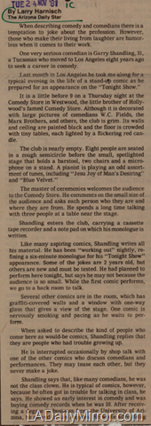 I rarely dig into my old clips, but here is my feature on Garry Shandling, who died today at the age of 66, from the Arizona Daily Star, Nov. 24, 1981.