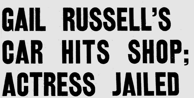 Intoxicated movie star Gail Russell plows into the front of Jan’s Restaurant on the the Fourth of July, 1957
