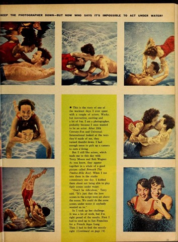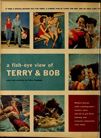 Peter Gowland photographed Terry Moore and Robert Wagner for “Beneath the Twelve-Mile Reef,” in Modern Screen, 1954.