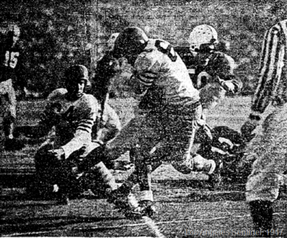 … but the Sentinel’s sports section highlights five African Americans playing in the Rose Bowl: Claude “Buddy” Young, Ike Owens, Bert Piggott and Paul Patterson of the University of Illinois, and Bob Mike of UCLA.