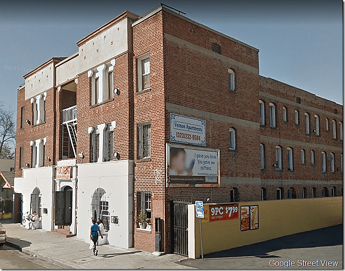 The former La Vada Apartments, site of a stag party in 1947, via Google Street View.
