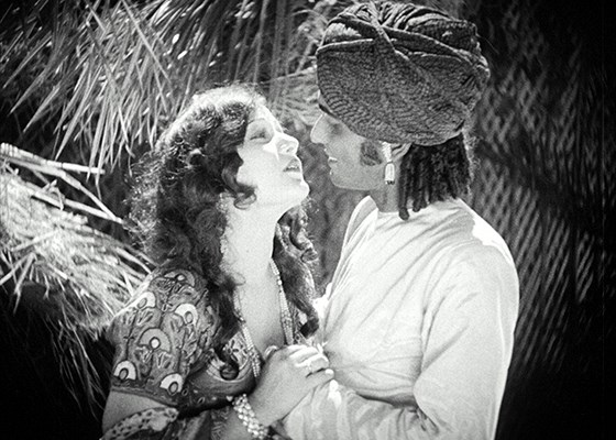 The dramatic 1929 Indian film “A Throw of Dice” followed, an almost biblical-like Cain and Abel tale of a nefarious Indian prince attempting to scam his cousin out of his kingdom. Featuring a cast of thousands and filmed in Rajasthan, the film combined pageantry, drama, spectacle, and deceit in a tale of romantic passion. Gorgeous production design and costumes brought the epic story alive. Buchwald and Bochius added Eastern mysticism and intrigue to proceedings.