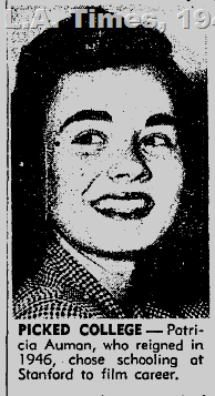 In 1979, The Times surveyed former Rose Queens, finding that many of them lived in Orange County. One of the women interviewed by Lael Morgan was Patricia Auman, the Rose Queen for 1946, who selected an education at Stanford over pursuing a film career.