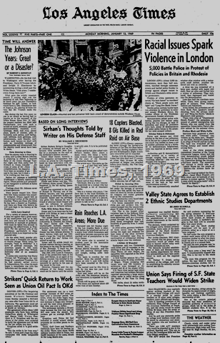 Jan. 13, 1969: The first Super Bowl – and it doesn’t make Page 1 of the Los Angeles Times. Kicked back to sports. I would love to have been sitting in the news meeting that day…