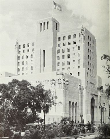 Memorial and funeral services occurred in the building as well, led off by services for James Keeler, a former Civil War veteran and internationally known newspaper man, who suffered a stroke in the hotel. On June 2, 1927, a full police honors funeral service was held for Assistant Police Chief A. W. Murray, featuring fireman’s band, drill teams, and honor guards. Actor Theodore Roberts’ funeral was held at the Temple December 18, 1928, with over 2000 people attending, including director Cecil B. DeMille. Actor George Fawcett gave the main eulogy, and actor Conrad Nagel sang at the services.