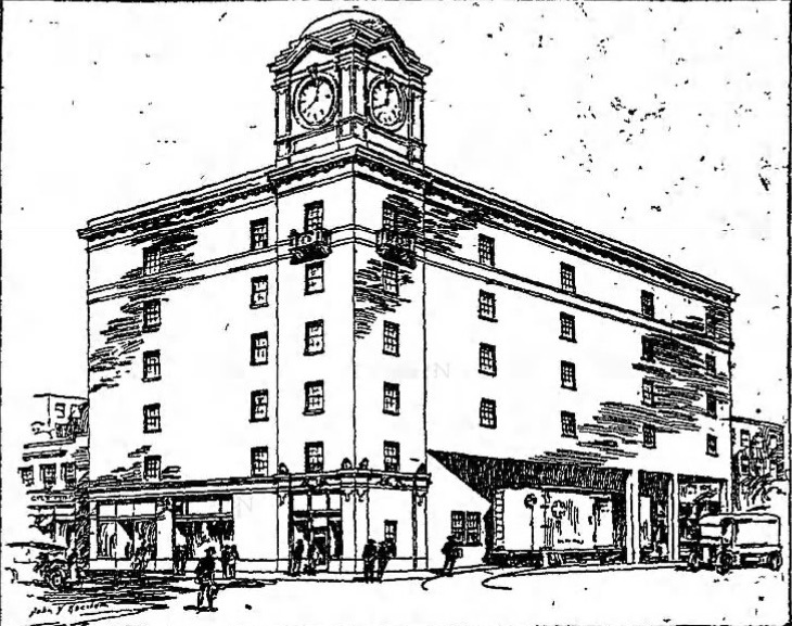 Businessman A. J. Clark formed Premier Fireproof Storage and purchased the land at Santa Monica and Cahuenga to construct a large facility. Pulling the first permit April 27, 1922, for 6372 Santa Monica Blvd., Clark hired architect Edward T. Flaherty to design a six-story concrete building valued at $80,000. Employing reinforced concrete, brick, and terra cotta, the facility has 150 tons of steel to help reinforce the 13-inch thick walls. The building featured floors dedicated to storing pianos, automobiles, rugs, and furniture, along with cold storage to hold furs, and four stores would occupy the first floor.