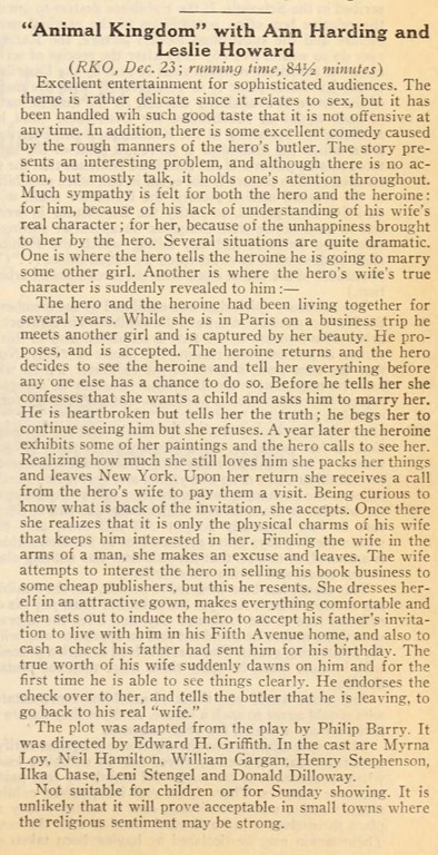 I’m going to guess The Animal Kingdom falls in Mordaunt Hall territory and that having originated on the stage, with Leslie Howard in the lead, he liked it.