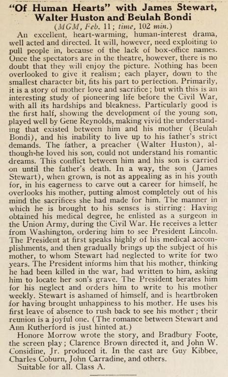 “Of Human Hearts” 1938