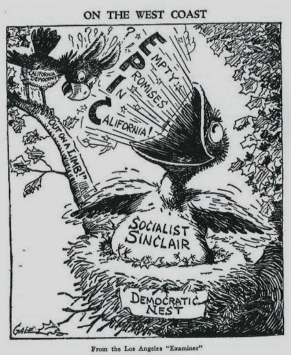 90 years ago, author and former Socialist Upton Sinclair entered the race for Governor of California as a Democrat, hoping to better the lives of common people and the unemployed. Upset at the idea that taxes would be raised on the wealthy and independent film production would assist the unemployed, rich Hollywood moguls colluded to destroy his campaign with the first use of negative advertising in mass media, setting the stage for what we see today in political campaigns.