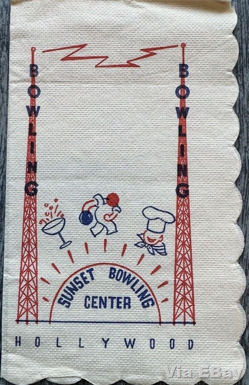 A napkin from Sunset Bowling Center, 5842 Sunset Blvd.