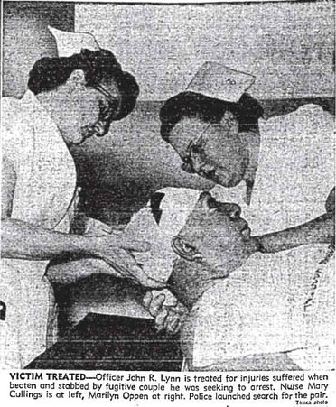 ![]() Detective John R. “Jack” Lynn of the LAPD’s bunco-fugitive detail, with 15 years on the force, was sent to the Alexandria to get Joan. apparently believing she was alone. But when he got to the room, Elmo was there and attacked him. Elga Payne, a hotel janitor, said: “The cop was trying to get at his gun but the other guy was beating him with his fists. Then the girl came out of the room with a long pocketknife and began stabbing at the cop.” Elmo yelled: “Hurry up and cut the —— so I can get his gun!,” Payne said. Lynn cried out for Payne to help him, so Payne ran down to the lobby and called for help. By the time help arrived, the couple had fled and Lynn had staggered down to the lobby. He had superficial knife wounds, a broken jaw and lost three teeth, The Times said. Joan and Elmo got past the 50 officers who canvassed skid row and made it to San Francisco before they were arrested Sept. 15, 1958, still armed with Lynn’s .38 revolver. After being charged with attempted murder, Elmo was convicted in the beating and sentenced to one to 10 years in prison. His sentencing was delayed so that Milwaukee authorities could decide whether to extradite him for trial on charges of violating his parole. The Times never followed up on the case, so we don’t know what became of Elmo or Joan. According to the Social Security Index, Elmo M. Schilling died Feb. 3, 2004, in Wisconsin. A man named John R. Lynn, born Aug. 26, 1914, died in Los Angeles on June 17, 1973, but it is unclear if this is the former detective. |
