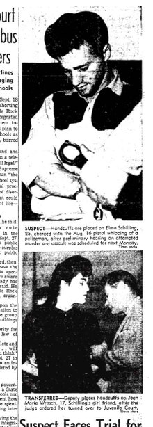 Milwaukee police had issued a fugitive warrant for her and her boyfriend: Joan was a runaway and Elmo Monroe Schilling, 24, had violated his parole for a burglary conviction. They had a room on the fifth floor of the Alexandria Hotel, 5th and Spring, and until two days ago were selling magazine subscriptions door to door. Their boss, Jim Auteri, who also lived at the Alexandria, said he fired them because Elmo kept flirting with the other women selling subscriptions.