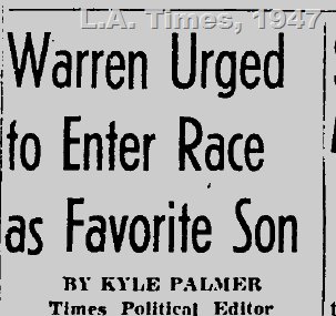 An ardent Republican at an ardently Republican paper, Palmer not only covered the 1948 Republican convention, he played a key role during 12 hours of negotiations in which Warren was accepted as the vice presidential candidate for nominee Thomas E. Dewey.
