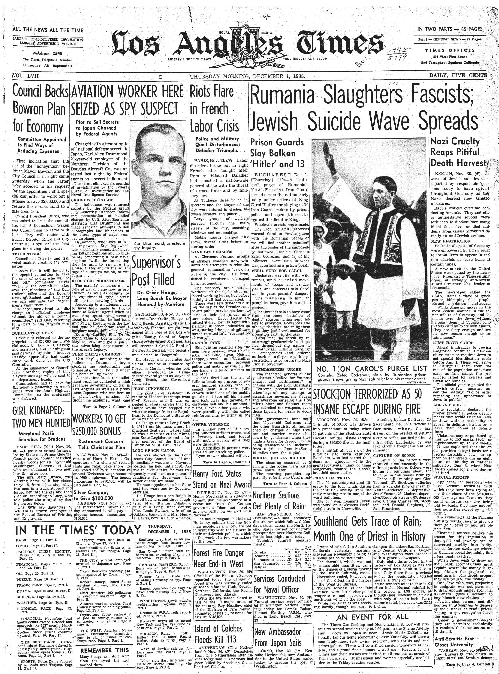 December 1, 1938: California prepares to use the gas chamber for executions rather than hanging.
