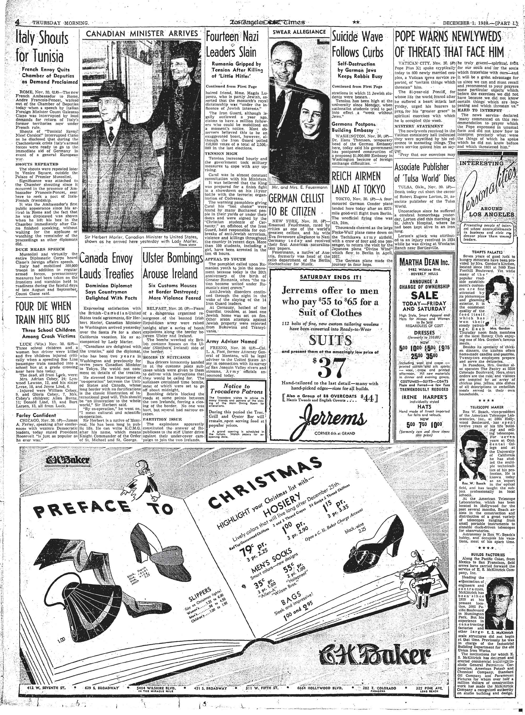 In Los Angeles, a Northrop employee is arrested on charges of selling plans and photos of combat planes to the Japanese.