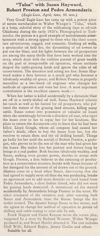 Tulsa (1949) w/Susan Hayward, Robert Preston, Chill Wills, Lloyd Gough, Pedro Armendariz, Iron Eyes Cody, Ed Begley, Jimmy Conlin…